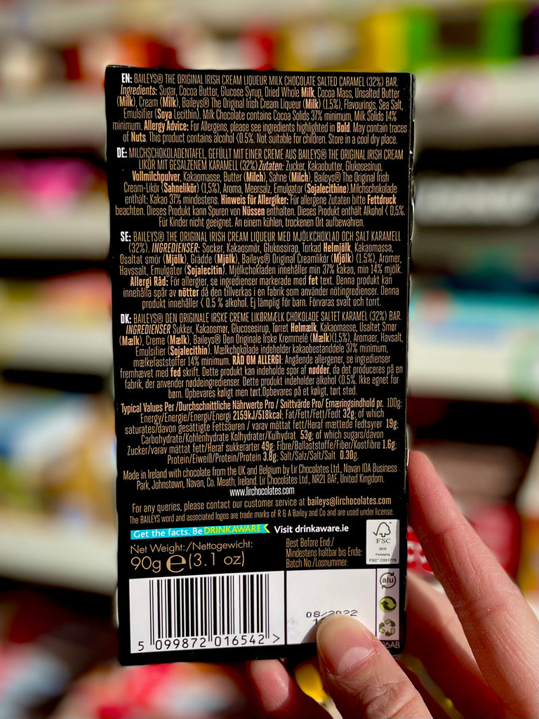 Salted caramel milk chocolate bar with Baileys original Irish cream