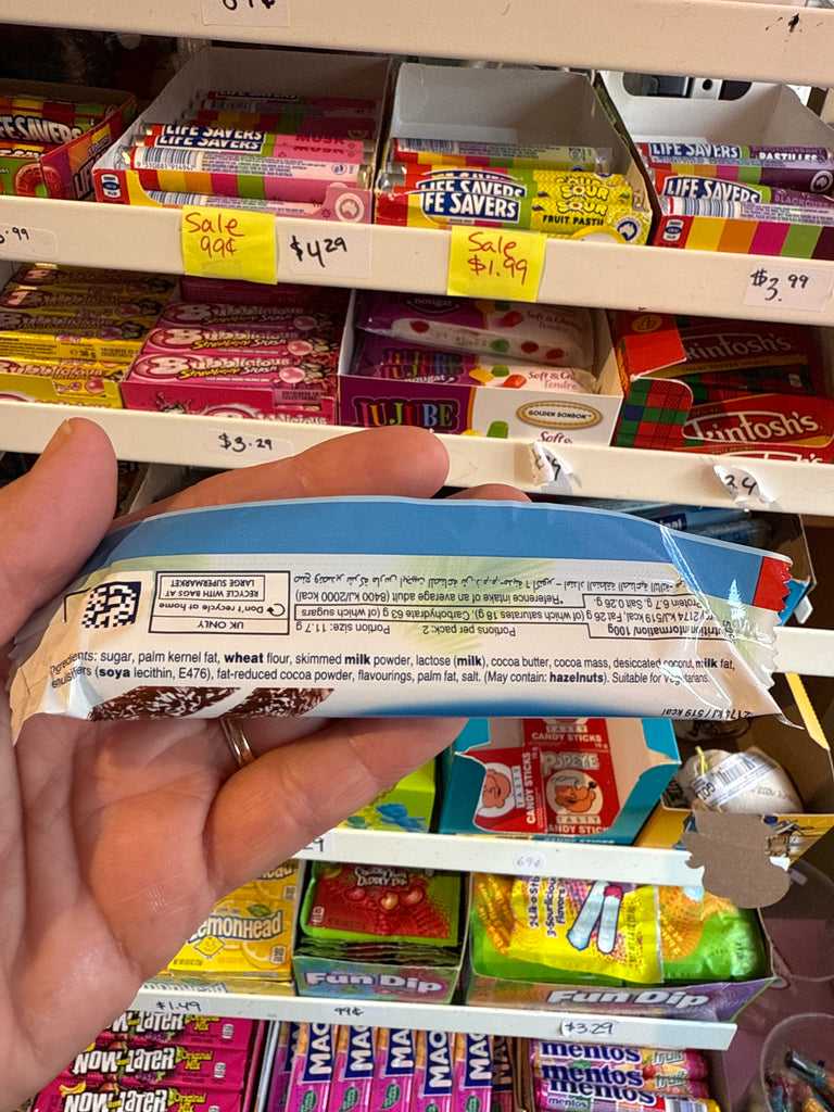 Milk chocolate covered wafer biscuit coconut filling
