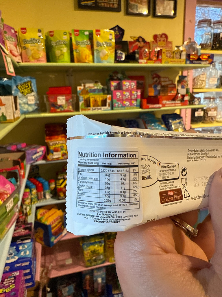 Crispy wafer filled with pistachio cream covered in milk chocolate