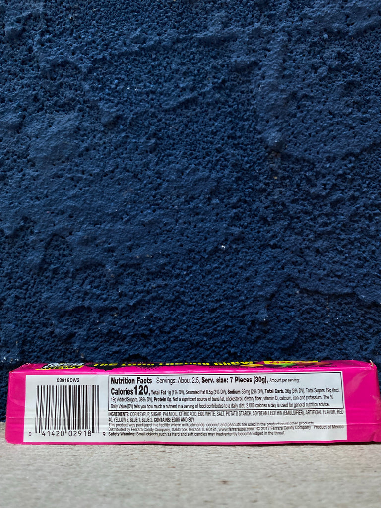 The longes lasting chew from the US. Original flavours include apple, strawberry, grape, cherry and banana