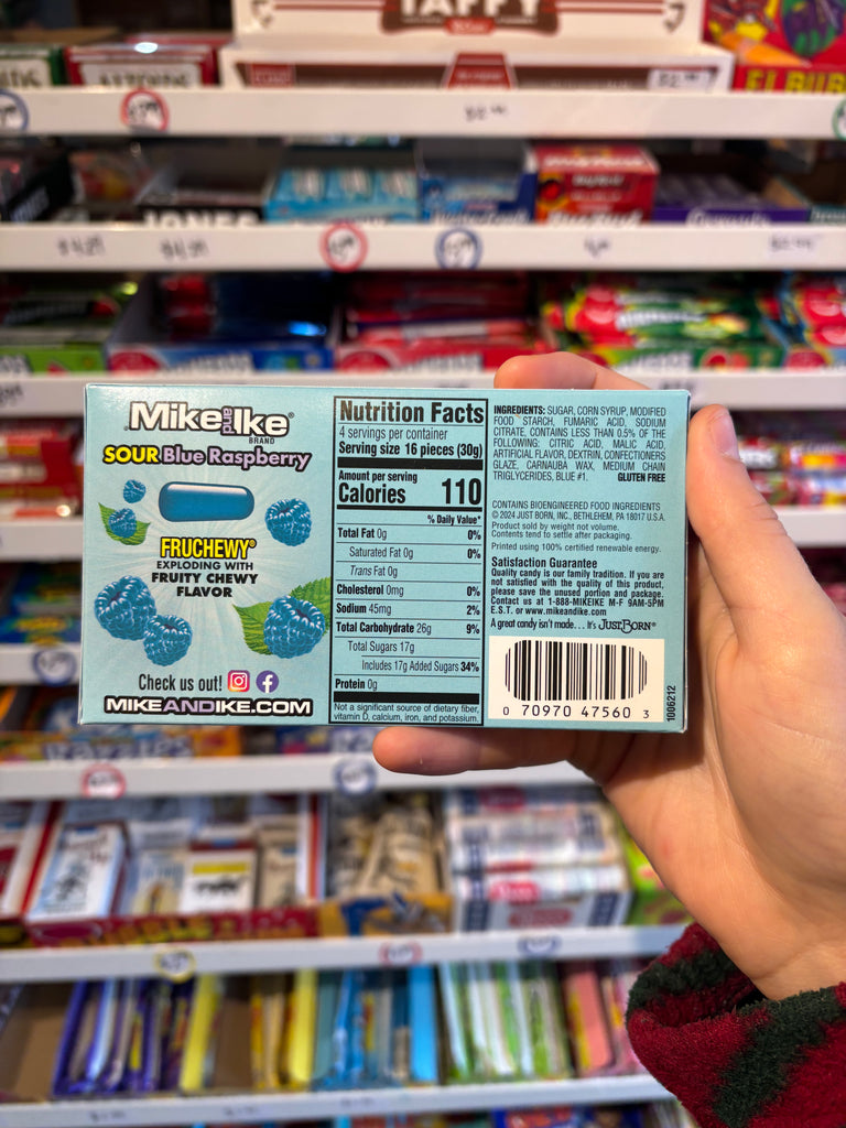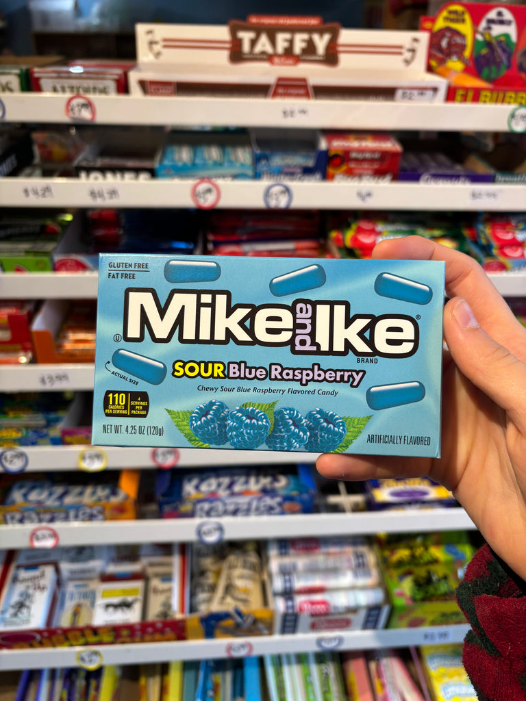 Classic blue raspberry Mike and Ike’s with a sour kick