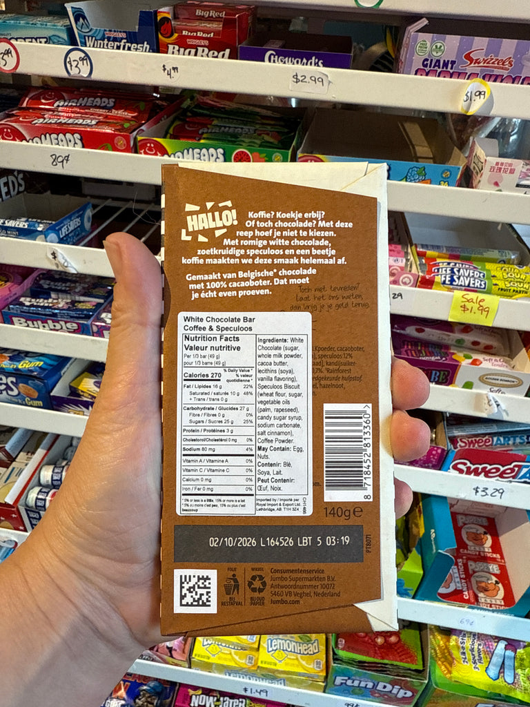 White chocolate bar with coffee & speculoos (Biscoff) cookies